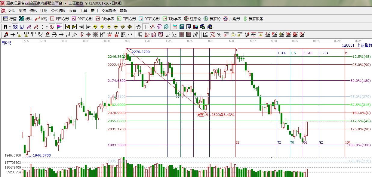 綜上所述:依據(jù)贏家江恩技術(shù)工具分析得出:江恩時(shí)間和價(jià)格的完美結(jié)合在次展現(xiàn),今日如期拉出放量中陽,目前來看反彈結(jié)構(gòu)尚不完整,明天沖高關(guān)注上方阻力2055點(diǎn),第二阻力2078點(diǎn),下方支撐2031點(diǎn),回踩此位置不破,上升行情將會(huì)持續(xù),操作方面:按照工具規(guī)則,適當(dāng)加大倉位。星級(jí)風(fēng)險(xiǎn)提示,謹(jǐn)慎看多。
