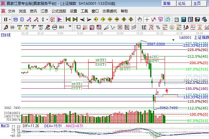 周三大盤延續(xù)大跌態(tài)勢低開震蕩再度下跌1%,砸盤的依然是藍籌權(quán)重,深市幾大幾指數(shù)則全線小漲,創(chuàng)業(yè)板盤中最高漲幅近2%。板塊方面,保險、釀酒、石油、銀行領(lǐng)跌,題材方面,開盤次新悶殺,科技屬性題材輪番表現(xiàn),鄉(xiāng)村振興走勢轉(zhuǎn)弱,下跌個股略多,成交量進入遞減縮量。技術(shù)方面,隔夜外盤下跌,更加確認日線結(jié)束上攻展開二次碾壓動作,江恩百分比225度與240度對應(yīng)點位3271-3287為盤中阻力,不能突破繼續(xù)向180度3222點,極強支撐是極反通道弱勢外軌線3180位置,上證50已回補一個缺口,百分比270度2880多空爭奪后看方向選擇,繼續(xù)下行回補下個缺口的概率較大,2825點及2800點為強支撐;創(chuàng)業(yè)板圍繞日線生命線震蕩,量能如保持修復(fù)生命線的幾率較大,待下個時間窗前守好生命線則為最佳走勢,下方1711點是支撐。操作上短線繼續(xù)休息,等待滬指確認極強支撐有效或下個時間窗附近時尋找機會。今日支撐3222、3200,今日阻力3271、3287,僅供參考,不構(gòu)成任何投資建議。