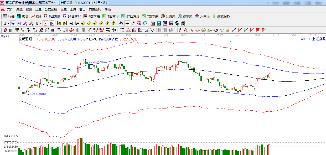 綜上所述:依據(jù)贏家江恩技術(shù)工具分析得出:今日低位盤整之后,隨后在藍籌股的帶領(lǐng)下一路震蕩上行,收復(fù)江恩180度位置,次位置不破,有望繼續(xù)震蕩上行,上方拋壓區(qū)為135度2157點,120度2168點,支撐江恩180度2122點,下一時間窗口2月24日。操作方面,手中個股逐步提高止損位保護,星級風險提示,謹慎看多。