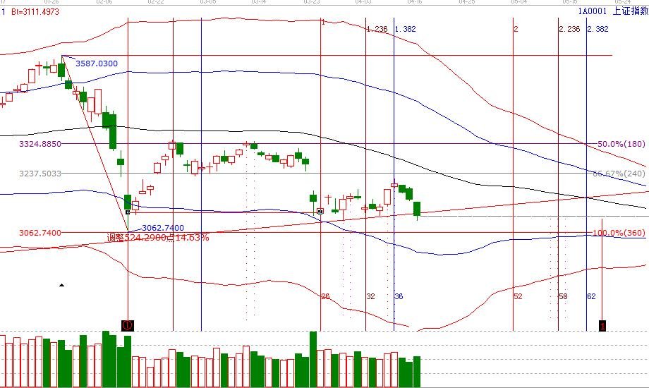 ?、贉付讨芷跍?5分鐘觸及紅色極弱通道線,30分鐘觸及弱勢(shì)外軌線,市場(chǎng)如橫盤則會(huì)鈍化極反通道幾條線;日線破90度3126點(diǎn),45度是3077點(diǎn),這條線破位則大盤將回到另外一個(gè)循環(huán)中。