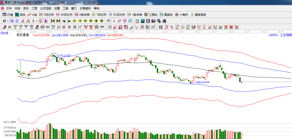 綜上所述:依據(jù)贏家江恩技術工具分析得出:市場整體呈現(xiàn)震蕩整理走勢,尾盤收小陽星,下跌動能有所縮減,但整體人氣還比較低迷,明日或將繼續(xù)震蕩反抽,但高度有限,上方阻力位2015點,2031點,操作上,嚴格控制倉位,保持謹慎態(tài)度。星級風險提示,看空。
