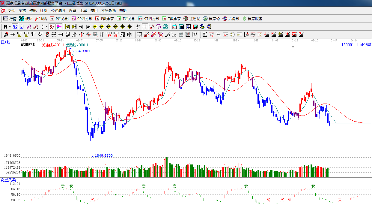 ☆依據(jù)贏家江恩系統(tǒng)能量買賣提示:綠色能量柱開始縮短,短期謹慎看空。