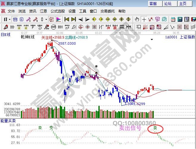☆依據(jù)贏家江恩理論系統(tǒng)能量買(mǎi)賣(mài)提示:多空能量發(fā)出賣(mài)出信號(hào),看空。