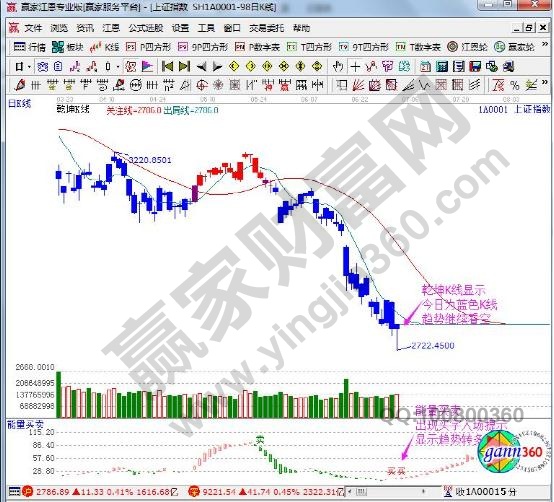 ☆依據(jù)贏家江恩理論系統(tǒng)極反通道提示:月線已經(jīng)基本跌至藍(lán)色下軌線支撐處,周線也逼近藍(lán)線支撐,日線在超弱通道仍是下尋紅線的走勢(shì),但空間有限,大周期看2700一線已經(jīng)是底部階段。日內(nèi)30分鐘極反通道下探藍(lán)線支撐后展開反彈,空間上明日先看生命線2815附近。