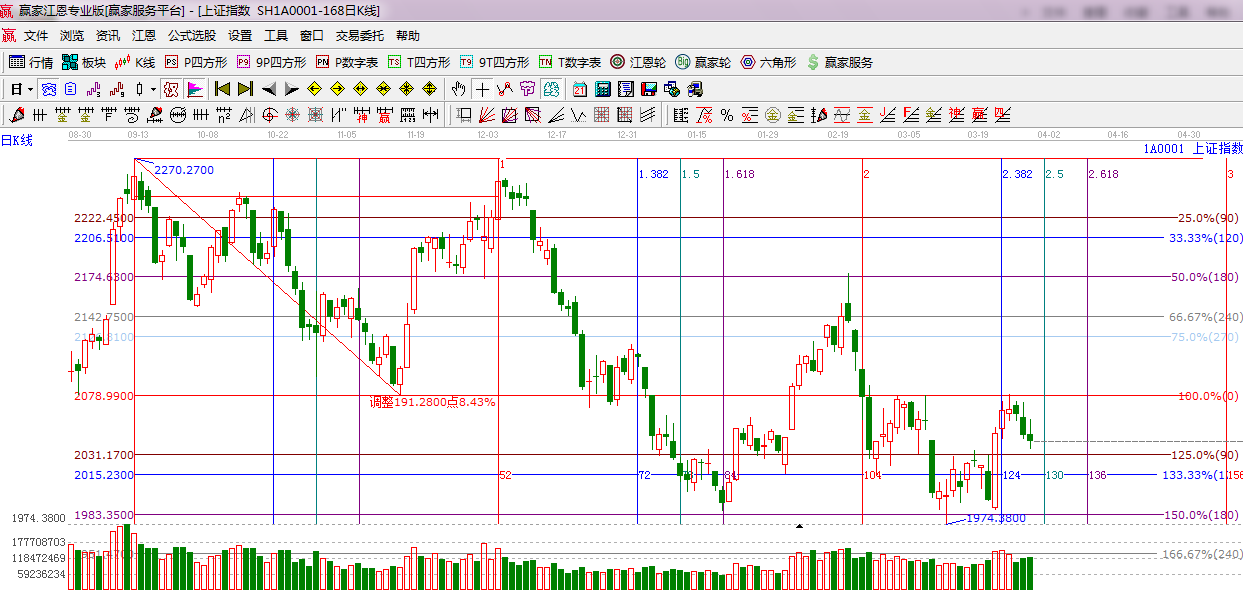 ★依據(jù)贏家江恩系統(tǒng)波段百分比提示:指數(shù)如期回踩江恩90度支撐,90度價格2031點(diǎn),周一依然重點(diǎn)留意此位置,上方強(qiáng)阻力2078點(diǎn)。