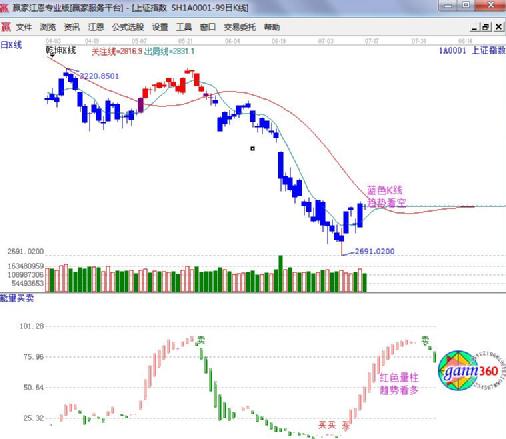 ☆依據(jù)贏家江恩理論系統(tǒng)乾坤K線提示:藍色K線,波段趨勢仍為空。