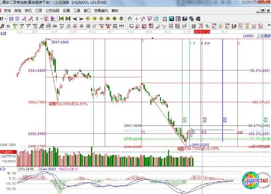 ★依據(jù)贏家江恩理論系統(tǒng)江恩百分比線提示:周五指數(shù)在百分比支撐2823處展開震蕩,2800-2823仍是當(dāng)前重要支撐區(qū)間,穩(wěn)住2823,將繼續(xù)向上方的240度線2867運行。