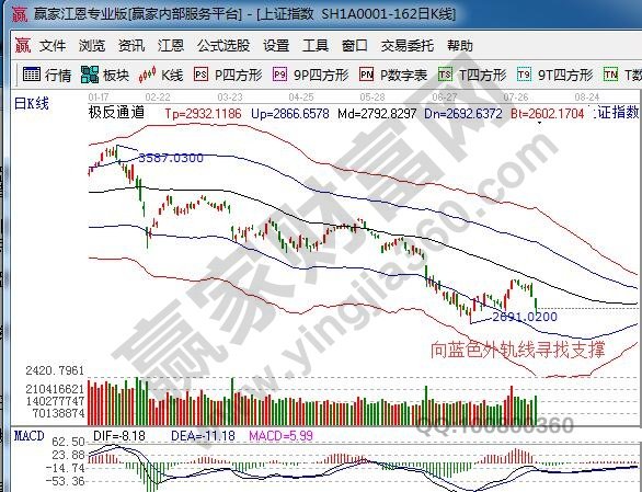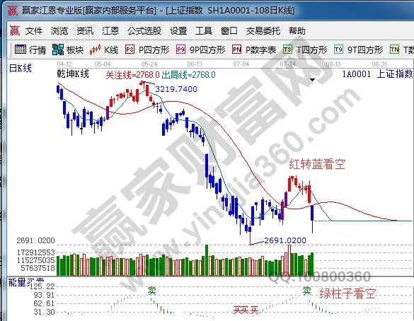 江恩看盤綜述:通過江恩理論系統(tǒng)趨勢、時(shí)間、價(jià)格工具綜合評判市場一星看多(五星評級(jí)標(biāo)準(zhǔn))。大盤日線受生命線反壓下跌向藍(lán)色下軌線尋找支撐,短周期15、30、60分鐘時(shí)價(jià)共振是下跌途中的暫緩信號(hào);空間上,江恩百分比延伸線顯示,連續(xù)兩日市場擊破零度、180度對應(yīng)的2862點(diǎn)、2772點(diǎn),2772點(diǎn)反復(fù)不能收復(fù)則直逼新低; 時(shí)間上,日線時(shí)間點(diǎn)是明天及下周一,周線時(shí)間窗是8月16,大盤月線極反通道藍(lán)色下軌線是2680附近,等待時(shí)間窗口是否與價(jià)格形成共振,在此期間多看少動(dòng),弱勢行情下本金安全是第一位。