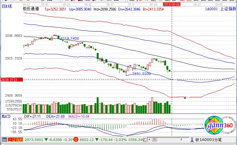 截止收盤,滬指跌1.00%,報(bào)2740點(diǎn);深成指跌2.03%,報(bào)8602點(diǎn);創(chuàng)業(yè)板指跌1.89%,報(bào)1481點(diǎn)。盤面上看,煤炭、農(nóng)業(yè)服務(wù)、豬肉、自由貿(mào)易港、海南等板塊上漲;水泥、西藏、超級(jí)品牌、集成電路、機(jī)場(chǎng)航運(yùn)、生物制品、半導(dǎo)體等板塊跌幅居前。滬股通凈流出4.2億,深股通凈流入10億。相應(yīng)的極反通道指標(biāo)的支撐壓力提示,如下圖所示: