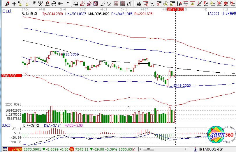 滬指漲0.33%,報(bào)收2603點(diǎn);深成指跌0.39%,報(bào)收7545點(diǎn);創(chuàng)業(yè)板跌0.62%,報(bào)收1284點(diǎn)。從盤(pán)面上看,銀行、證券、保險(xiǎn)、知識(shí)產(chǎn)權(quán)保護(hù)、債轉(zhuǎn)股、知識(shí)產(chǎn)權(quán)保護(hù)等板塊領(lǐng)漲;白酒、食品安全、石油、粵港澳大灣區(qū)、海工裝備等板塊領(lǐng)跌。滬股通凈流入22億,深股通凈流出5.9億。相應(yīng)的極反通道指標(biāo)的支撐壓力提示,如下圖所示:
