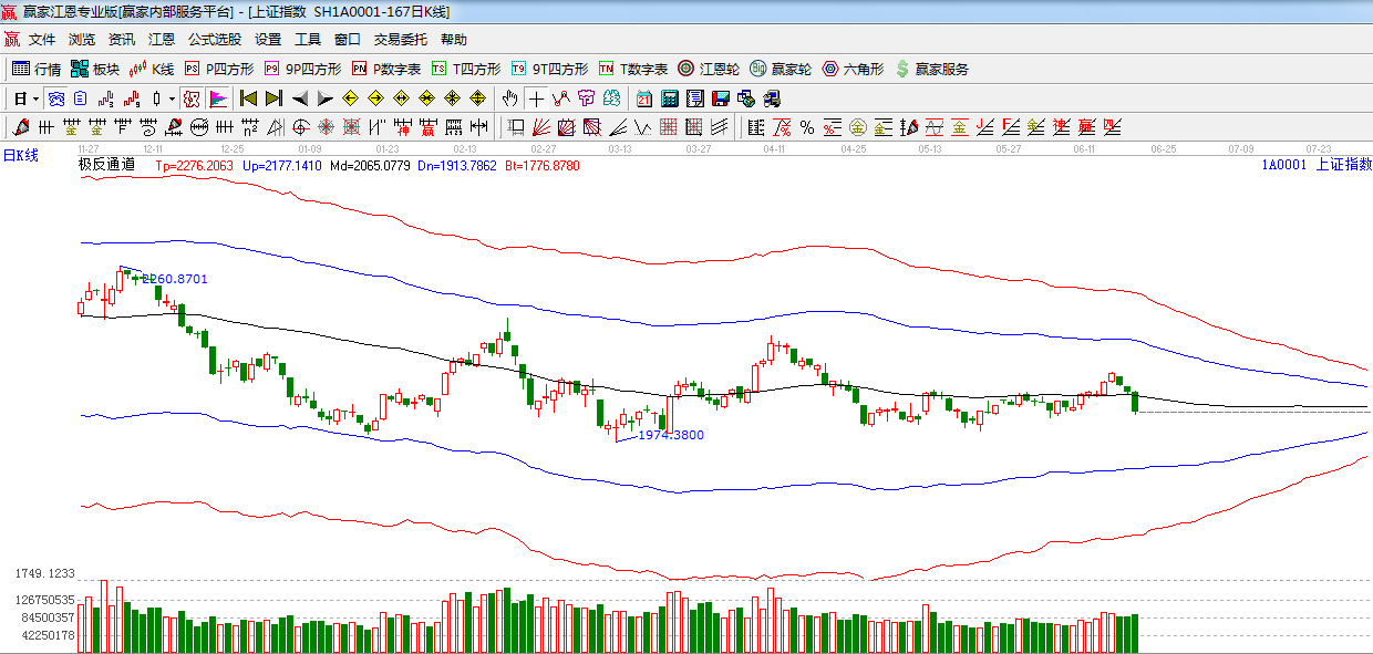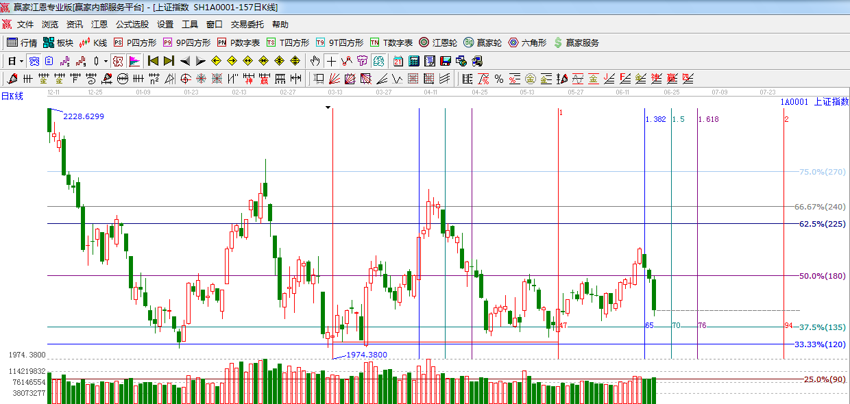 江恩看盤綜述:依據(jù)贏家江恩技術(shù)工具分析得出:大盤放量中陰破位生命線,進(jìn)入弱勢(shì)區(qū)域,短線支撐90度2017點(diǎn),45度1995點(diǎn),下一時(shí) 間窗口6.25附近,預(yù)計(jì)市場(chǎng)短期將繼續(xù)震蕩下挫。操作上,倉(cāng)位控制在3成,減少操作頻率。