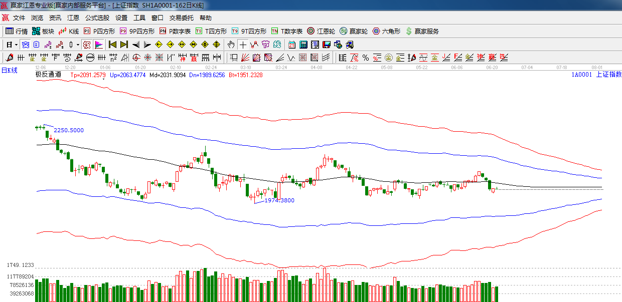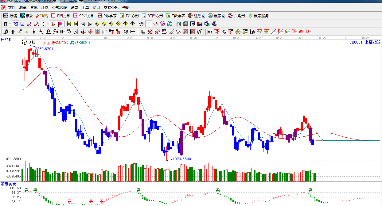 ☆依據(jù)贏家江恩系統(tǒng)極反通道提示:陰十字星報(bào)收,生命線之下弱勢(shì)區(qū)域,看空。