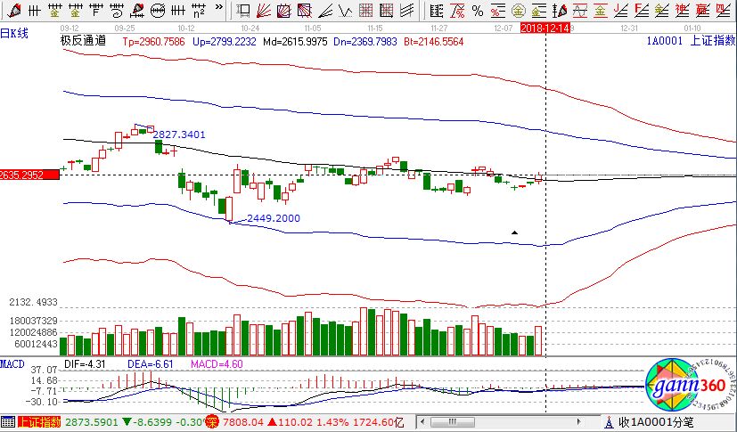 滬指漲1.23%,報收2634點;深成指漲1.43%,報收7808點;創(chuàng)業(yè)板漲0.73%,報收1348點。盤面上看,高鐵、水泥、家用電器、5G、建筑材料、白酒等板塊漲幅居前;高送轉(zhuǎn)、農(nóng)業(yè)、ST板、北汽新能源等板塊跌幅居前。滬股通凈流入36億,深股通凈流入32億。相應(yīng)的極反通道指標的支撐壓力提示,如下圖所示: