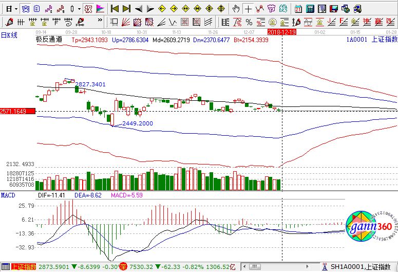 滬指跌0.82%,報(bào)收2576點(diǎn);深成指跌0.82%,報(bào)收7530點(diǎn);創(chuàng)業(yè)板跌0.45%,報(bào)收1293點(diǎn)。盤面上看,黃金、ST板塊、軍工、電力等板塊漲幅居前;裝配式建筑、高送轉(zhuǎn)、雄安、深圳國(guó)資改革、水泥等板塊跌幅居前。滬股通凈流出15.3億,深股通凈流出12.5億。相應(yīng)的極反通道指標(biāo)的支撐壓力提示,如下圖所示: