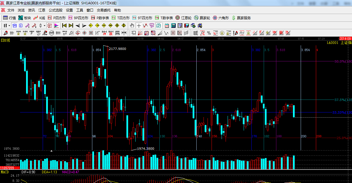 江恩看盤(pán)綜述:依據(jù)贏家江恩技術(shù)工具分析得出:指數(shù)三角形收斂形態(tài)預(yù)計(jì)再近一周給出周線(xiàn)級(jí)別的方向選擇,再次期間操作上以短線(xiàn)、波段結(jié)合操作,倉(cāng)位上保持在3-5成。