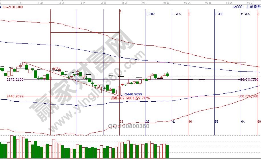 上周五分析中談到本周29號時間窗口,壓力2635點(diǎn)不能突破則短線將進(jìn)入調(diào)整,市場將形成短線拐點(diǎn),再度回探日線生命線2572點(diǎn)??臻g方面,波段百分比顯示,昨天高點(diǎn)2630與180度壓力2634點(diǎn)僅相差4個點(diǎn),29號支撐是225度(2585點(diǎn))、240度(2569點(diǎn)),29號是假期前最后一個時間窗口,下個時間窗是2月4號,因假期向后推遲。操作策略,大盤日線生命線上運(yùn)行波段看多,這里是短線回調(diào),不改變波段上漲判斷,調(diào)整對于空倉者是一次建倉機(jī)會,對于高倉位者是一次調(diào)倉機(jī)會。