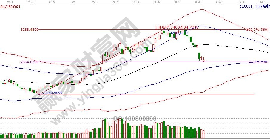 8號(hào)是近期一直再談的大盤(pán)日線(xiàn)時(shí)間窗口,最低點(diǎn)2866點(diǎn)與波段百分比(2440-3228)二分位180度2864點(diǎn)僅相差2個(gè)點(diǎn),距離理想的參考位2800-2840還有少許空間,但此點(diǎn)位已具備短線(xiàn)參考價(jià)值。帶領(lǐng)大家休息了半個(gè)月后,早盤(pán)在贏家江恩系統(tǒng)VIP學(xué)員群依據(jù)此工具信號(hào)提示空倉(cāng)者可以輕倉(cāng)參與,待下周外部因素明朗后再做近一步計(jì)劃。極反通道藍(lán)色下軌線(xiàn)是持倉(cāng)籌碼的底線(xiàn),17號(hào)是5月份第二個(gè)時(shí)間窗口。9號(hào)盤(pán)中支撐是2877點(diǎn)、2860點(diǎn);盤(pán)中壓力是2928點(diǎn)、2944點(diǎn)。操作策略,指數(shù)擊破黑色生命線(xiàn),藍(lán)色下軌線(xiàn)是回撤目標(biāo)位,同時(shí)指數(shù)靠近短線(xiàn)參考區(qū)適量開(kāi)新倉(cāng),整體倉(cāng)位控制在3成以?xún)?nèi),低風(fēng)險(xiǎn)者可以等待藍(lán)色下軌線(xiàn)。