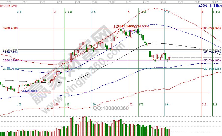 5月10號(hào)、20號(hào),大盤日K線分別回探波段百分比延伸線1倍循環(huán)二分位2834點(diǎn)后止跌企穩(wěn),第一次反彈止步于短周期60分鐘生命線位置,本次關(guān)注此線能否突破站穩(wěn)(學(xué)員通過工具查看關(guān)鍵位),站上此線則指數(shù)日k線回補(bǔ)下方缺口的概率將降低(但不排除),23號(hào)短周期時(shí)間后會(huì)再次進(jìn)行評(píng)估。投資者應(yīng)好好把握當(dāng)前機(jī)會(huì),待整固結(jié)束后市場(chǎng)必會(huì)有一波反彈到生命線的機(jī)會(huì)。本周短周期重要時(shí)間窗口是23號(hào),日線時(shí)間窗口是28(29)號(hào)。22號(hào)盤中壓力是180度2928點(diǎn)、225度2944點(diǎn),盤中支撐是90度2894。操作策略,指數(shù)擊破黑色生命線進(jìn)入弱勢(shì)區(qū)域,高風(fēng)險(xiǎn)者倉3-5成,低風(fēng)險(xiǎn)者本周進(jìn)入備戰(zhàn)期擇機(jī)參與。