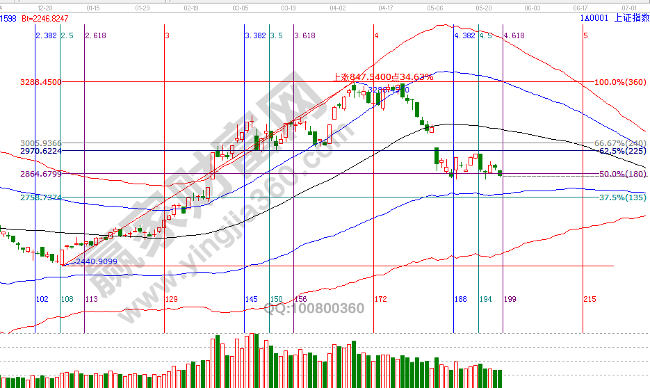 時間是決定市場走勢最重要因素?;仡欄A家江恩系統(tǒng)工具點評時間窗口,4月22號指出降低倉位至3成,4月25號提示低風(fēng)險者空倉休息,5月9號時間窗口提示短線高風(fēng)險可以開倉,17號時間窗口前(15、16號)提示獲利出局,這兩天提示短線周期時間窗口(23號)將確認(rèn)一關(guān)鍵位,從收盤數(shù)據(jù)看,市場明日失守波段百分比180度2834點,價格拐點將是5月第三個日線時間窗口28、29號,在此時間段,無技術(shù)、無紀(jì)律者休息不要再被收割了,你是否將1季度的收益已回吐市場?要改變虧損的現(xiàn)狀,從擁有一套完整交易體系開始。江恩理論研究時空運(yùn)行,通過工具預(yù)判出時間后,空間上則看趨勢工具極反通道藍(lán)色下軌線(VIP學(xué)員查看相應(yīng)位置)。日線藍(lán)色下軌線站穩(wěn)將是又一次操作機(jī)會,待整固結(jié)束后市場必會有一波反彈到生命線行情,而這機(jī)會是留給有準(zhǔn)備的交易者。24號盤中壓力是315度2844點、0度2860點,盤中支撐是225度2815、180度2800點。操作策略,指數(shù)擊破黑色生命線進(jìn)入弱勢區(qū)域,高風(fēng)險者倉3-4成,低風(fēng)險者本周進(jìn)入備戰(zhàn)期。