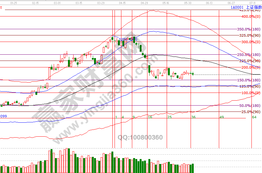 江恩時間周期精準(zhǔn)判斷出5月份市場拐點,4、5號是6月份第一個日線時間窗口,投資者明后兩天應(yīng)關(guān)注好市場方向選擇;趨勢與空間結(jié)合判斷,目前整體處于反彈周期,上周進(jìn)入反彈第一目標(biāo)區(qū)2928-2960后量能不及回落,指數(shù)不破波段百分比延伸線二分位2834點反彈預(yù)期不變,待突破第一區(qū)間后反彈將全面展開。4號盤中壓力是135度2911點、180度2928點,盤中支撐是45度2877、0度2860點,6月時間窗口分別是4(5)號、13號、25號。操作策略,指數(shù)擊破黑色生命線進(jìn)入弱勢區(qū)域,整體持倉保持在3-4成,做到進(jìn)可攻退可守。