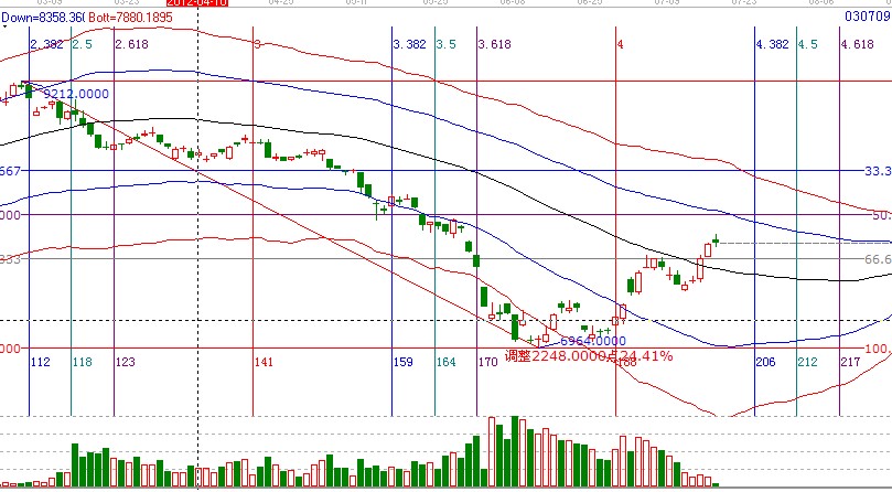 贏家江恩系統(tǒng)極反通道口決: 白線以上強(qiáng)勢(shì)走,白線以下難抬頭,紅黃兩條外軌線,壓力支撐顯勢(shì)頭;