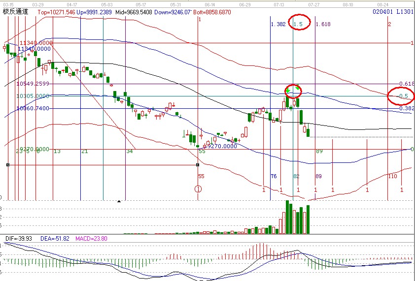 得出以下結(jié)論L期貨在2012年3月15日見(jiàn)高點(diǎn)11340至2012年6月8日間低點(diǎn)9270【55】個(gè)交易時(shí)間下跌了2070點(diǎn)。那么他的未來(lái)2分為價(jià)格在哪里呢???時(shí)間在哪里呢??