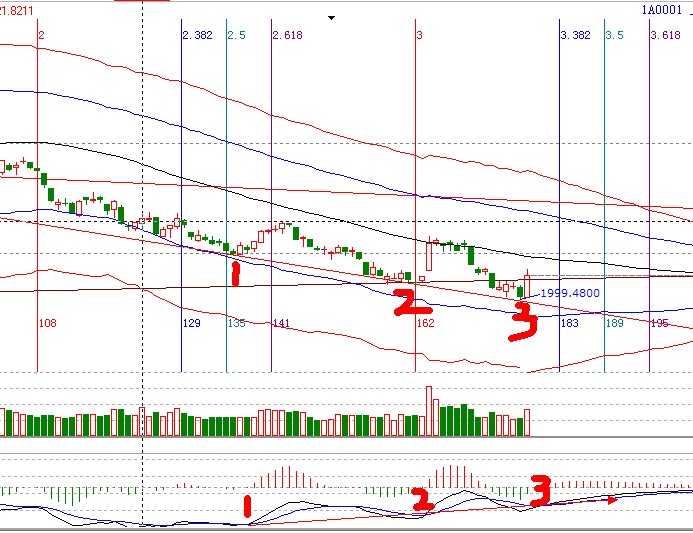 分形走勢有十余種,大盤的走勢最常見之一是經(jīng)過一波趨勢后產(chǎn)生的高高點的連線或低低點的連線而得出的第三個點,通常配合著指標的背離出現(xiàn),如2011年2月份高高點的連線產(chǎn)生的第三個點3086,隨后市場展開了瘋狂下跌;當前大盤自2012年7月出現(xiàn)低低點的連線產(chǎn)生的第三個點1998.48,MACD指標走出低背離,量能略有不足節(jié)前最后一個交易日如無實質(zhì)性消息,短期以震蕩為主;
